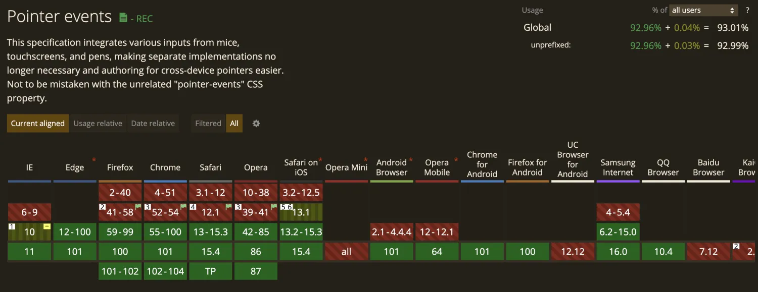 - A new standard, PointerEvent, was proposed, aiming to cover all the aforementioned input devices.