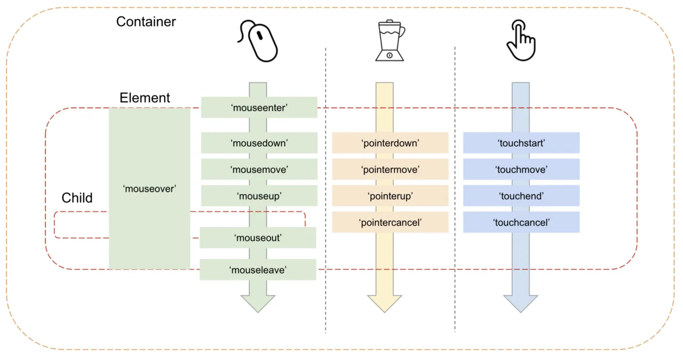 So we want to normalize Mouse / Touch / PointerEvent. The expected usage is as follows: