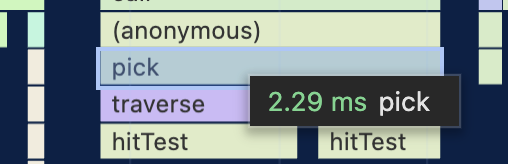 }Let's re-measure that, 20,000 Circle picking time becomes 0.088ms, an improvement of about 20 times!