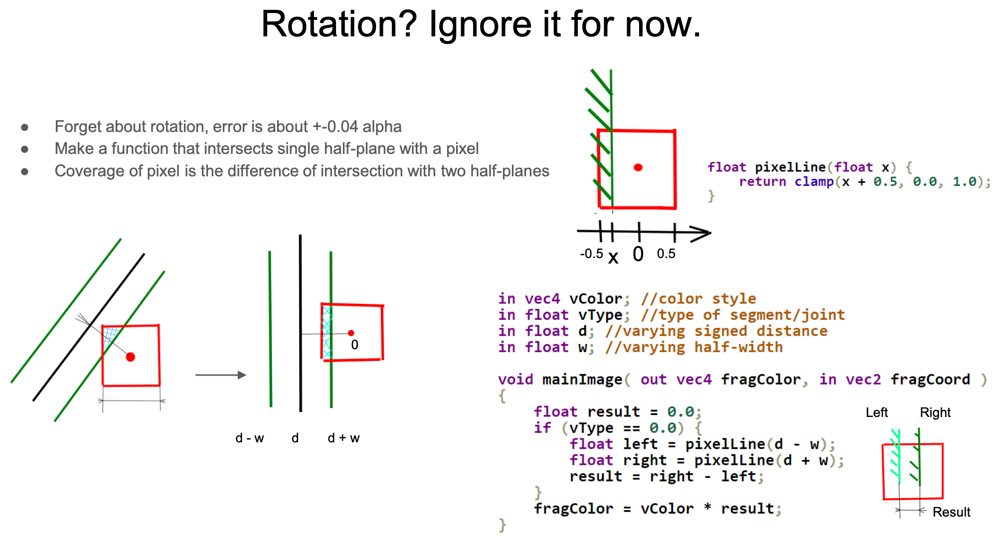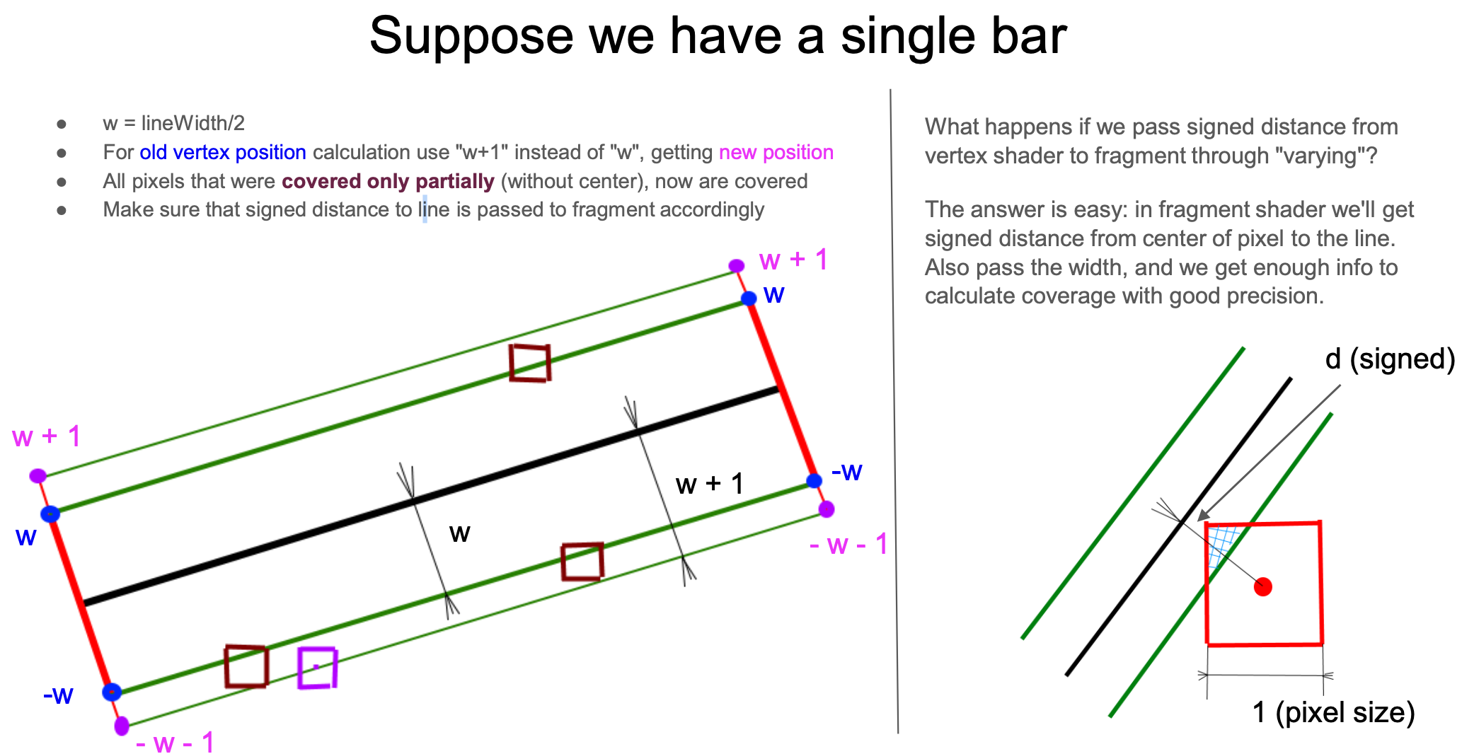 - The default implementation has noticeable jaggies, requiring additional anti-aliasing
