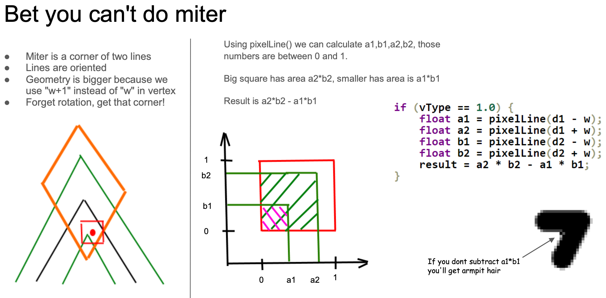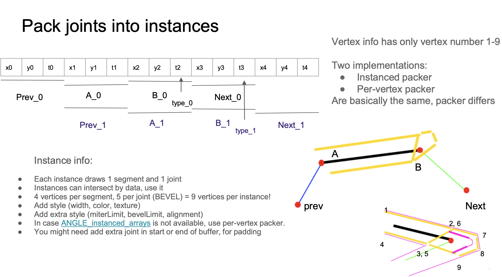 The following image comes from the WebGL meetup shared by Pixi.js: How 2 draw lines in WebGL. This article will heavily reference screenshots from it, and I will label the page numbers in the PPT. Since native methods are not available, we can only return to the traditional drawing scheme of building Mesh.