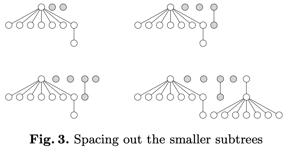 We can process the shifting subtrees from left to right sequentially, but this results in figure (a) below. We could also add a right-to-left traversal, but this would result in situation (b). We want to achieve the effect of (d):