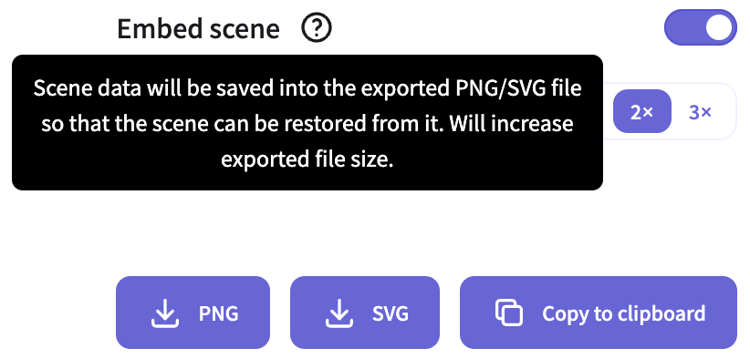 In addition to graphical information, scene matadata can also be embedded into the exported output. The image below is from Excalidraw.