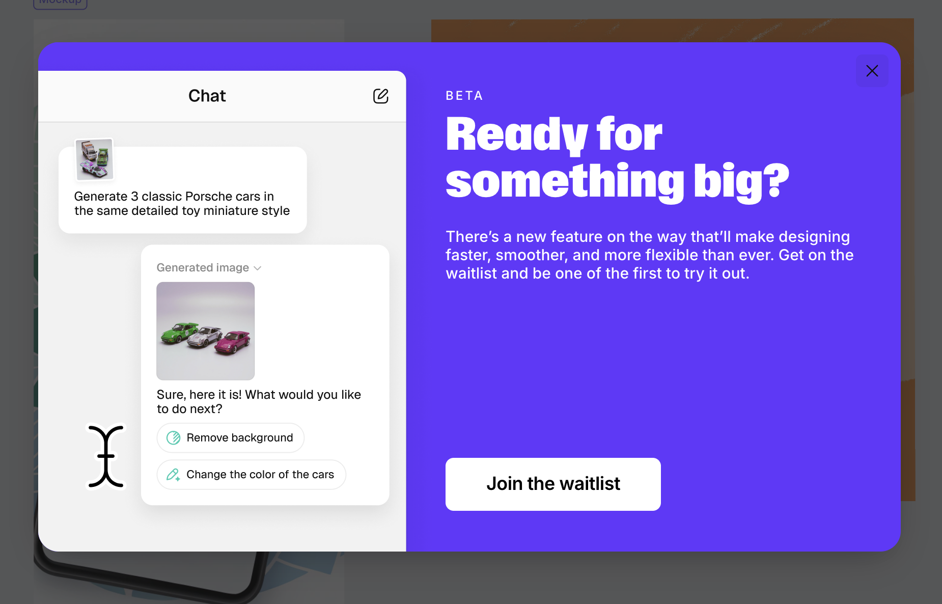 Recraft is also testing chat functionality. In my observation, canvas and chat are becoming the two main entry points for this type of editor: