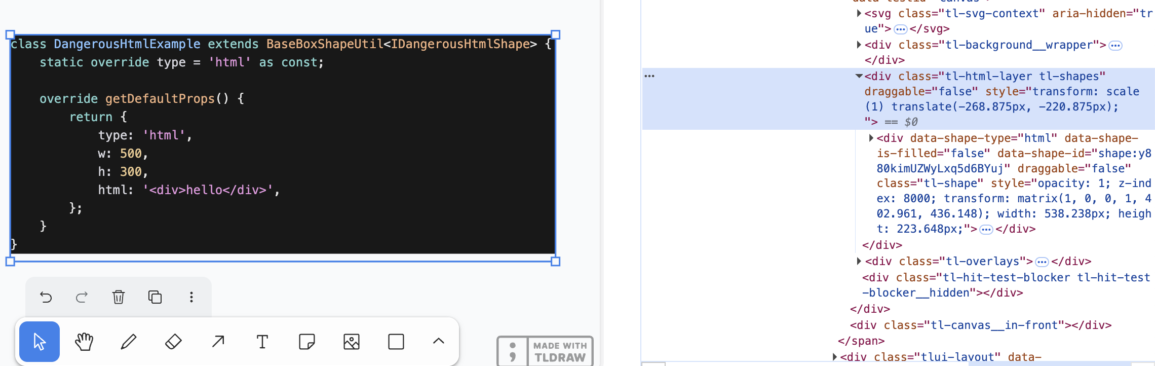 }We also add a serializable shape. Besides the common x/y/width/height props, the most important attribute is the innerHTML content: