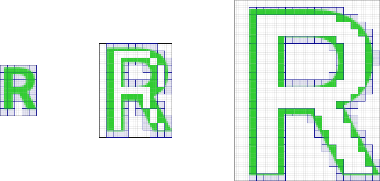 | Small size | Hinting difficult | Hinting supported Round vertical hinting offset in Vello Classic |
